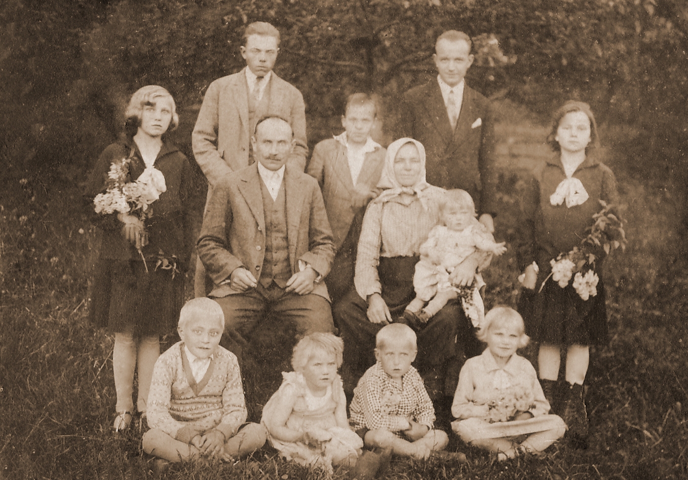 Mária, Štefan, Július, Ján, Margita otec Ján, mama Verona s Jolanou v náručí Jozef, Františka, Viktor, Helena